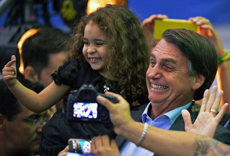 Entre os símbolos da liturgia da morte adotada pelo militar de extrema direita brasileiro, Jair Bolsonaro, candidato à presidência da República, figura agora também a imagem de uma menina de cerca de quatro anos imitando com os dedos polegar e indicador de sua mão direita o gesto de disparar um revólver. Foi ele quem lhe ensinou enquanto a segurava nos braços, rindo entretido.