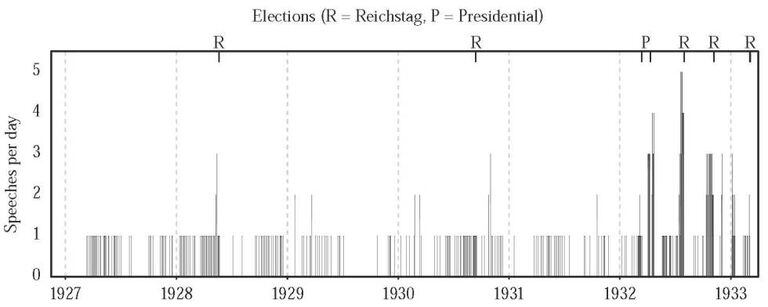 Em apenas cinco anos, entre 1928 e 1933, os nazistas deixaram de ser uma força marginal para ganhar as eleições nacionais da Alemanha com quase 44% dos votos. Nesse meio tempo, seu líder, Adolf Hitler, participou de mais de 500 atos por todo o país. Houve dias em que esteve em cinco cidades diferentes, sendo o primeiro político a usar o avião para ir aos comícios. Entretanto, uma exaustiva análise dos resultados eleitorais daqueles anos mostra que o partido nazista não teve um extra de votos onde Hitler subiu no palanque.