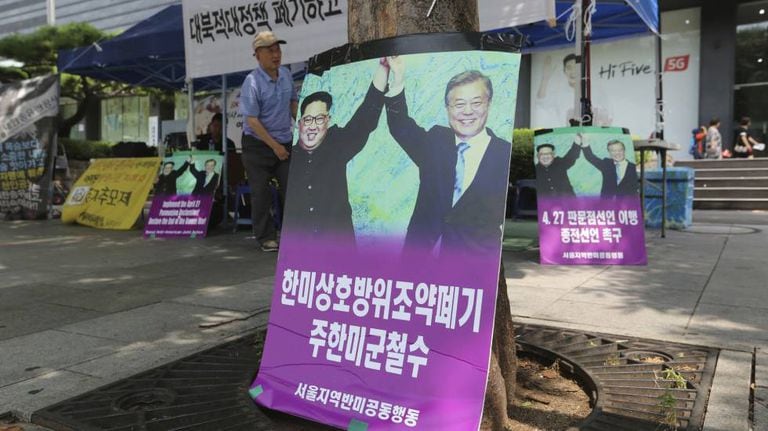 Mas qualquer iniciativa nesse sentido é atualmente impossível de ser realizada sob as pesadas sanções econômicas que o Conselho de Segurança da ONU impôs a Pyongyang depois de seus repetidos testes atômicos e de mísseis balísticos. Os Estados Unidos reafirmaram que não cederão nessa questão até que a Coreia do Norte tome medidas definitivas, completas e verificáveis de que esteja se desfazendo do seu arsenal nuclear. Pyongyang, por outro lado, defende uma negociação em fases e concessões de ambos os lados, que inclua, o quanto antes, uma flexibilização do embargo econômico. A assinatura de um tratado de paz entre os dois países também exige a aprovação dos Estados Unidos, que assinaram o armistício.