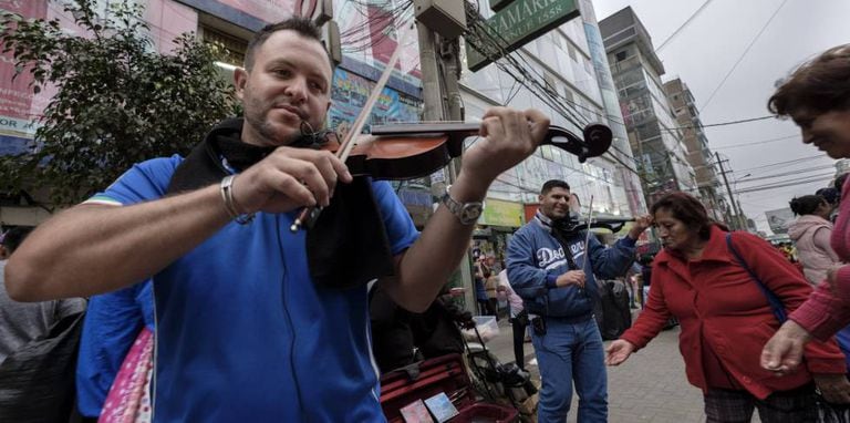 Andrés Ruiz, de 31 anos, chegou há uma semana a Lima com um violino como bagagem. Bacharel em Música pelo Conservatório da Universidade dos Andes, em Mérida (Venezuela), era diretor da banda municipal e dava aulas para mais de 100 alunos em uma escola secundária. Agora, com Darwin Guardia, um advogado de 40 anos de sua cidade, ele é um músico de rua.