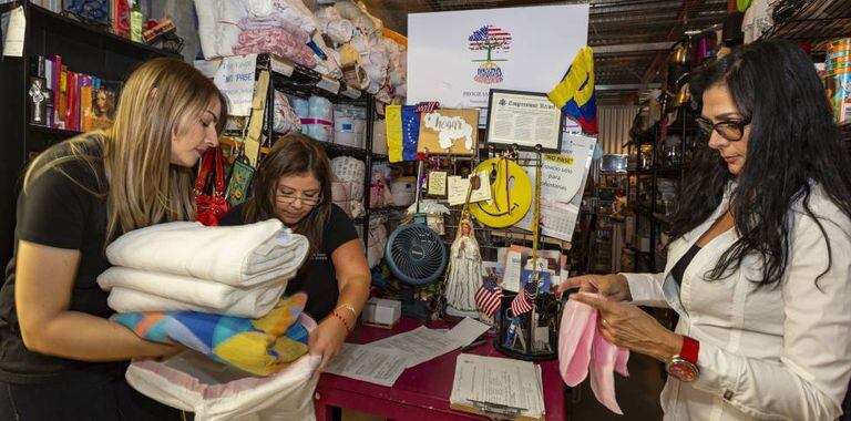 As prateleiras da ONG Venezuelan Awareness de Miami, que tem um centro de entrega de produtos básicos para venezuelanos recém-chegados, na sexta-feira, dia 24 de agosto, estavam lotadas. Em cada estante, uma etiqueta. Colchões de ar. Tapetes de banheiro. Saleiros. Toucas de recém-nascidos. Chaleiras. Abridores de latas. “Se meu pai souber que estou recebendo doações, acho que tem um ataque”, dizia María Alejandra Olmos, advogada de 39 anos que imigrou em junho para os EUA.