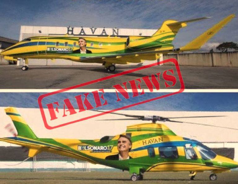 Uma frota de jatinhos e helicópteros pintados com as cores do Brasil e adesivados com o rosto de Jair Bolsonaro, atribuídos ao empresário Luciano Hang, dono da rede de lojas Havan. Por mais que ele nunca tenha escondido sua simpatia pelo capitão da reserva, a imagem é falsa.
