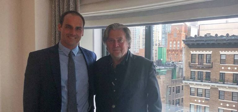Infalível de novo, a estratégia que o radical brasileiro seguiu se assemelha muito a dos casos anteriores: um uso da linguagem tosca a custo zero; contínuas críticas aos meios de comunicação tradicionais, enquanto constrói os seus próprios e faz um uso incomparável das redes sociais para obter seus fins. Em todos os casos, prima um componente nacionalista e um culto à personalidade que supera o de seus rivais. Como Trump na campanha, Bolsonaro também se valeu de seus filhos como porta-vozes. Um deles, no começo da corrida presidencial, manteve um encontro com Steve Bannon, ex-estrategista de Trump. Não há provas de que haja um plano coordenado em nível mundial, mas sim de que eles se retroalimentam e se aproveitam da onda ultraconservadora. "Brasil também muda! Esquerda derrota e ar fresco!", escreveu Salvini, vice-presidente do Governo italiano, no Twitter para comemorar os resultados do primeiro turno.