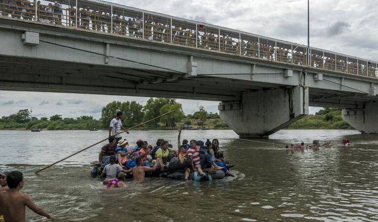 “Já não aguentamos mais, estamos fartos”, diz Carlos Rodríguez, que saltou para a parte externa da cerca que margeia a ponte fronteiriça e se moveu pouco a pouco, aferrando-se ao alambrado, pendurado a vários metros de altura. Atrás dele vêm seus amigos Fernando, Melvin e Rony, com o risco latente de cair no rio Suchiate. Quando chegam do lado mexicano, os agentes da Polícia Federal os olham a alguns metros, esperando imóveis do outro lado da cerca. As autoridades mexicanas priorizaram o atendimento a mulheres e crianças, mas o fluxo ia a conta-gotas, pois as solicitações de trânsito e refúgio estão sendo minuciosamente examinadas.