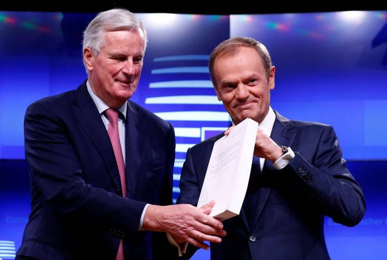 “Desde o começo não tivemos dúvida de que o Brexit é uma situação em que todos perdem e que as negociações só tratam de controlar os danos”, declarou Tusk nesta quinta, após se reunir no começo da manhã com o negociador-chefe da UE, Michel Barnier, que lhe entregou o texto do acordo selado na quarta-feira com o Governo britânico, um volume de 585 páginas e 185 artigos, três protocolos (sobre a Irlanda, Gibraltar e Chipre) e vários anexos sobre a saída “ordenada” do Reino Unido.