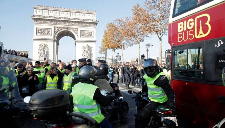 Em Paris, centenas de manifestantes bloquearam alguns pontos do anel viário da capital. Muitos dos vinham de localidades periféricas e tinham visto a convocação no Facebook e em outras redes sociais. À tarde, dirigiram-se à Champs Elysées, a grande avenida central, e à praça da Concórdia, a algumas centenas de metros do Palácio do Eliseu, a residência presidencial, isolada por cordões policiais e agentes da tropa de choque.