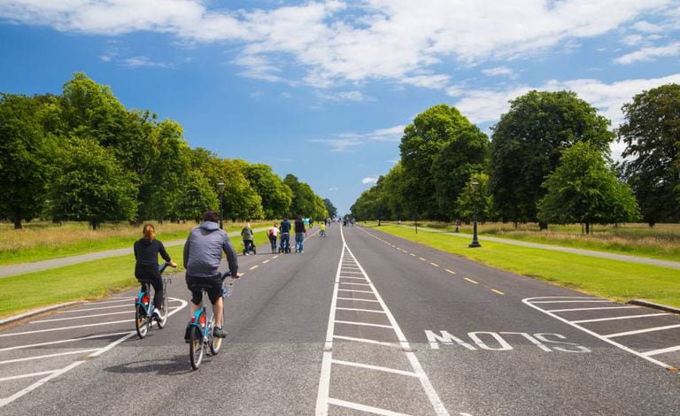 A bicicleta é especialmente prática para visitar tanto os seus tesouros arquitetônicos –do Trinity College ao castelo de Dublin, ao sul de Liffey– quanto os seus espaços verdes: da ciclovia do Grande Canal ao magnífico Phoenix Park, ao norte, cujas avenidas mais bonitas são hoje dedicadas às duas rodas. Uma boa ideia para os ciclistas é subir as montanhas localizadas ao sul de Dublin: três enormes rochas a 444 metros acima do nível do mar que oferecem uma vista fabulosa da cidade e fazem com que o esforço valha a pena.