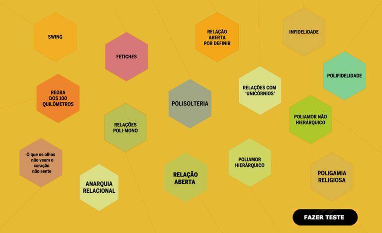 INTERATIVO | Este mapa, inspirado pelo do ativista Franklin Veaux, explica alguns modelos de relações não monogâmicas. Clique na imagem para alargar o mapa e responda a perguntas para ver onde você se localizaria.