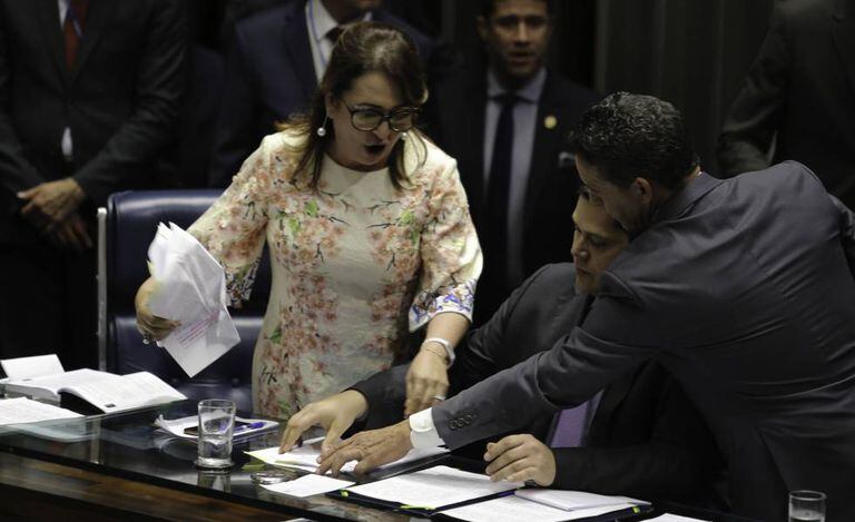 A senadora Kátia Abreu (PDT-TO) tomou uma pasta com documentos que estava diante de Alcolumbre. A partir de então, a sessão degringolou de vez. Perdido, Alcolumbre pediu para sua assessoria trazer uma cópia dos documentos. Enquanto isso, os parlamentares se revezavam no microfone reclamando da demora em definições. Tentou-se chegar a um consenso. Sem sucesso. Havia a proposta de que José Maranhão assumisse os trabalhos desde que a votação em aberto fosse mantida. Nem ele nem seus aliados entenderam que essa sugestão era adequada.