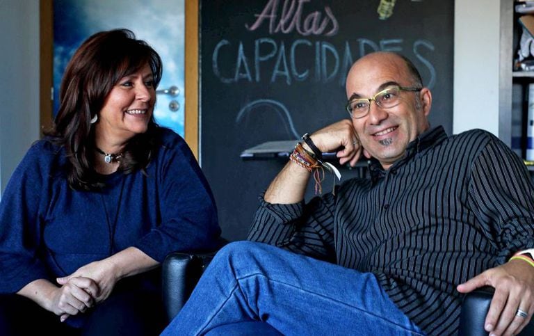A psicologia era a segunda opção de ambos. E mesmo assim dedicaram-lhe os 20 últimos anos de suas vidas. Olga Carmona (Madri, 1968) e Alejandro Busto (Montevidéu, 1966) estudaram na Universidade Nacional de Ensino à Distância da Espanha e se conheceram num congresso de psicologia em Barcelona. “O debate na época era se era possível fazer terapia pela Internet, algo que hoje fazemos”, conta Busto, rindo. Depois, em 2000, surgiu o Ceibe, o centro de psicologia onde atendem pais desconcertados pelo diagnóstico de alta capacidade de seus filhos, e onde são orientados a superarem “o medo” que isso lhes causa. “Não vivem [o diagnóstico] de um modo otimista, apesar de estarmos lhes dizendo que seus filhos têm um grande potencial”, observam. A dupla plasmou esse e outros ensinamentos no livro El Genio que Llevas Dentro (inédito no Brasil), com o qual desejavam romper o paradigma da inteligência acadêmica como sendo a única relevante. “Queremos que os pais comecem a ver seus filhos de um lugar mais saudável, através do conhecimento das inteligências múltiplas”, diz Carmona. E avisam: “Todas as crianças têm essas inteligências em maior ou menor medida”.
