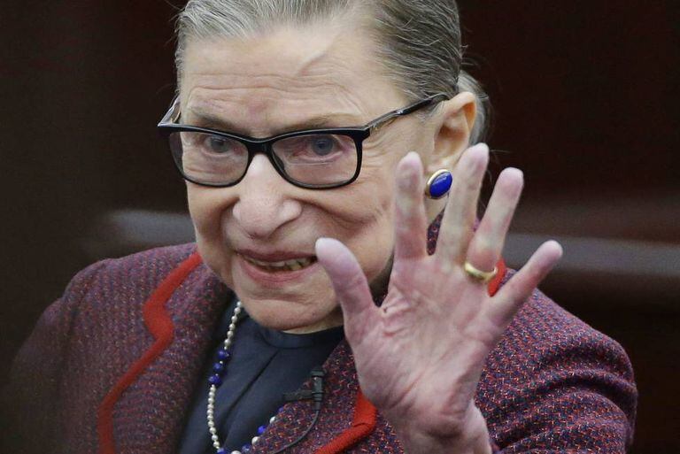 Seu visual é inconfundível: o cabelo penteado para trás, preso em um pequeno rabo de cavalo na nuca, óculos de tamanho generoso e golas de renda ou de cores brilhantes sobre a toga. Podemos ver sua silhueta ou caricatura, colorida ou em preto e branco, em xícaras, camisetas, livros infantis e quadrinhos de super-heróis. Também em bolsas e até mesmo tatuada nos braços de mais de um millennial. Há bonecas que a evocam e meninas que se fantasiam de juíza Ginsburg no Halloween. Suas frases são impressas em placas, adesivos e cartazes em qualquer manifestação mais ou menos progressista que se preze. Canções e roteiros de filmes foram escritos em sua homenagem. Qualquer contratempo com sua saúde deixa metade dos Estados Unidos em suspense.