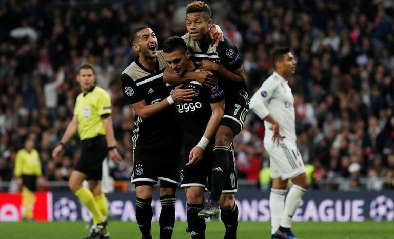 O Ajax goleou o Real Madrid por 4 a 1 nesta terça-feira, no estádio Santiago Bernabéu, e, de forma surpreendente, se classificou para as quartas de final da UEFA Champions League depois de ter perdido o primeiro jogo por 2 a 1, na Holanda. Logo aos 6 minutos do primeiro tempo, a equipe de Amsterdam abriu o placar com Ziyech. Superiores em campo, os visitantes ampliaram com o brasileiro David Neres após linda jogada de Tadic. Vinicius Junior, que foi convocado para a seleção brasileira, sentiu uma lesão no tornozelo direito e deixou o gramado chorando, substituído por Asensio.