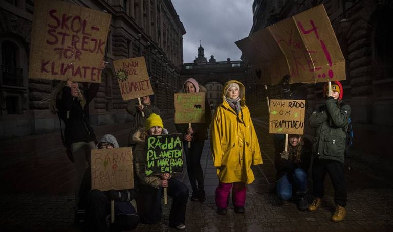 Ela chega sozinha, carregando uma placa de madeira. Uma chuva fina cai sobre sua capa amarela, vários números maior do que deveria, e que esconde seu corpo pequeno. Cruza os arcos do majestoso edifício de Rksdag, o Parlamento sueco, e continua andando em linha reta, ignorando o traçado da rua. São quase oito da manhã de sexta-feira e na praça de Mynttorget há pessoas a sua espera. Ela mal troca algumas palavras e coloca sua placa ao lado de um canteiro: Skolstrejk for Klimatet, greve escolar pelo clima. Foi neste lugar do centro de Estocolmo que tudo começou em agosto passado. Foi quando Greta Thunberg, até então conhecida por ser filha de uma famosa cantora de ópera sueca, realizou o protesto que se transformaria em poucos meses no símbolo do movimento juvenil de luta contra a mudança climática que promete encher as praças na greve mundial de 15 de março.