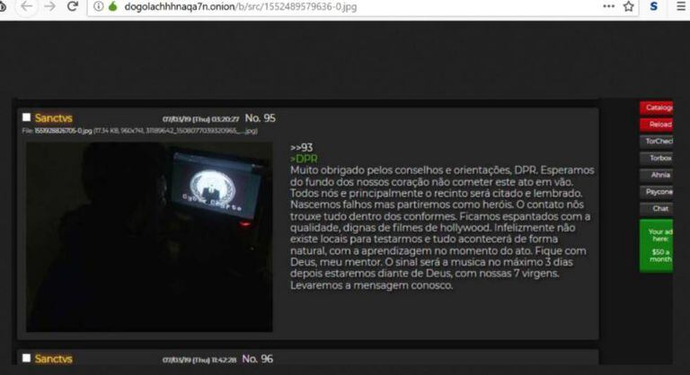 Além das mensagens de elogio à barbárie, uma delas, datada de 7 de março e endereçada ao DPR – que seria o moderador do fórum -, é atribuída a um dos atiradores, que agradece as dicas para a realização do plano.