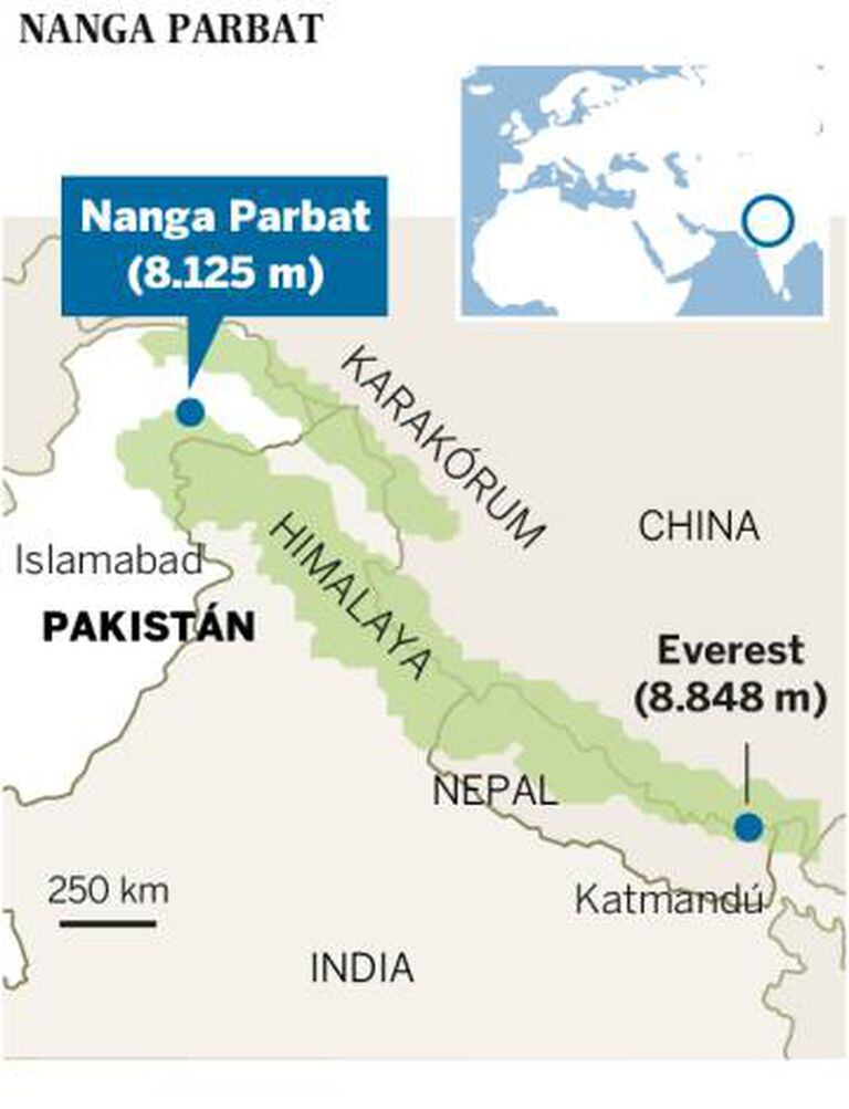 Isolado dos demais cumes, o maciço do Nanga Parbat é colossal aos olhos e o acesso é menos complexo do que o exigido pelos outros de mais de oito mil. Além disso, possui a parede mais alta do planeta, em sua vertente Rupal: um abismo de 4.500 metros. Por isso foi escolhida pela Alemanha e sua fixação durou décadas, deixou um punhado de êxitos e uma impressionante trilha de cadáveres espalhados pelas encostas da montanha nua, como é conhecida no Paquistão. Também deixou histórias extraordinárias e frases terríveis, como esta de Reinhold Messner: "Procurando meu irmão [entre os restos de uma avalanche, em 1970] eu conheci a loucura".