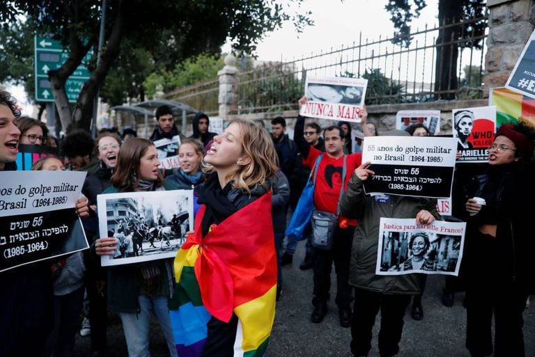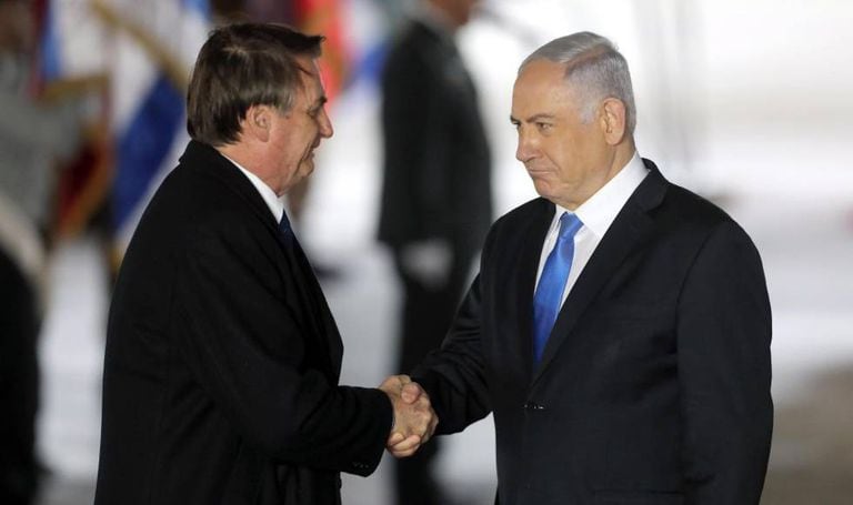 Na chegada, Bolsonaro afirmou "amar" Israel, falando em hebraico, e chamou Netanyahu de "irmão". O presidente brasileiro havia prometido durante a campanha eleitoral, e seguindo os passos dos Estados Unidos, a polêmica mudança da embaixada brasileira para Jerusalém, cuja parte leste está ocupada pela Palestina, mas essa anexação não é reconhecida pela ONU.