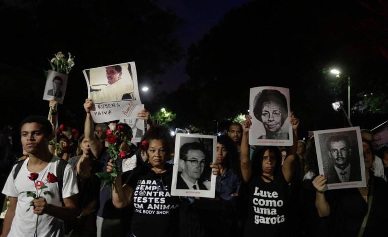 No ato do Ibirapuera, em frente ao monumento pelos mortos, os manifestantes repetiam os nomes das vítimas da ditadura seguidos em coro pela palavra “presente”. Marielle Franco e Anderson Gomes também foram mencionados assim como as vítimas de chacinas nas periferias do país. A citação faz alusão à falta de punição a crimes cometidos por policiais e ex-policiais, um entulho da ditadura que o Brasil carrega.