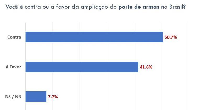 A pesquisa também mostra como alguns temas defendidos pelo Governo são encarados pelo eleitorado. De acordo com os números, 50,7% são contra ampliar o porte de armas, enquanto que 41,6% são favoráveis. Os resultados permaneceram praticamente iguais aos de fevereiro, com uma leve oscilação para cima no índice dos que são contrários. "O que aconteceu em Suzano pode ter influenciado", explica Roman. Os números do Atlas Político mostram, neste tema, um cenário mais em disputa do que os do Instituto Datafolha. Perguntados se era preciso facilitar o acesso a armas para as pessoas, 69% dos entrevistados do Datafolha disseram discordar totalmente ou em parte. Uma das primeiras medidas de Bolsonaro foi um decreto que ampliava o acesso a armas. Ainda na matéria, há sinais preocupantes para o Governo, e para Moro. A maioria dos entrevistados, 68,9%, acredita que a criminalidade está aumentando, apesar do discurso linha-dura do ultraconservador presidente.