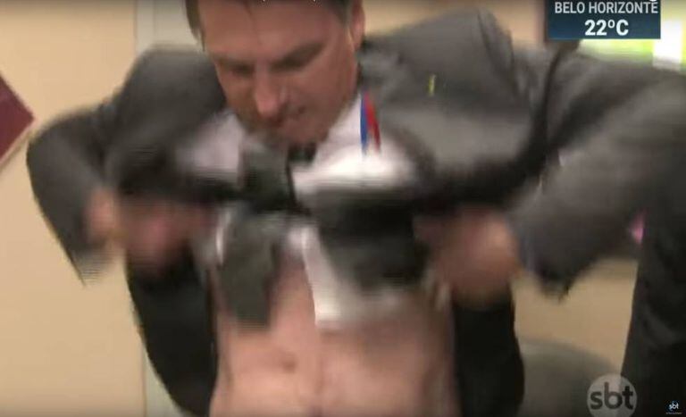 E o fez de maneira espetacular no SBT na quinta-feira quando levantou a camisa para mostrar a cicatriz das operações sofridas pela facada recebida durante um ato da campanha eleitoral, em Juiz de Fora, Minas Gerais. O Presidente justificou o gesto de mostrar as cicatrizes porque, disse, “ainda há quem diga que foi fake”.