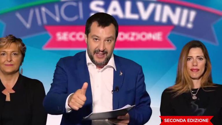 O vídeo de apresentação de Vinci Salvini (“Ganhe de Salvini”, em português, embora na realidade quem ganhe seja ele) é uma explosão de publicidade kitsch de um minuto e 49 segundos que desafia todas as regras do ridículo político. E essa é a graça. O líder da Liga aparece cercado pelos antigos vencedores do concurso com um croma azul de fundo sobre o qual desfilam emoticons, corações e símbolos das redes sociais. Ele faz uma voz de apresentador de concurso de televisão e o explica. “Quanto mais likes você der na minha página, quanto mais rápido você for... mais pontos você acumula. Os mais sortudos ganharão uma conversa comigo pelo telefone. Ajude-nos a difundir a nossa ideia da Itália, da Europa e do futuro”, diz ele, assumindo de antemão as críticas que receberá por isso.