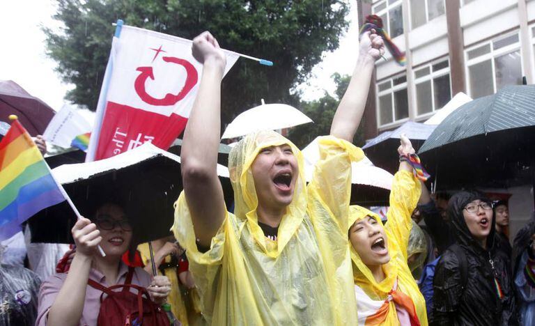 Dezenas de milhares de pessoas com a bandeira do arco-íris e lemas em favor da igualdade, muitas cobertas com capas de chuva em um dia de tempo fechado, concentravam-se diante do Yuan Legislativo (o Parlamento taiwanês). Elas irromperam em fortes aplausos, vivas e gritos de agradecimento quando chegou a notícia de que os deputados tinham aprovado, por 66 votos a 27, o artigo quarto, o mais relevante, que permite a pessoas do mesmo sexo formalizar o registro do seu casamento.