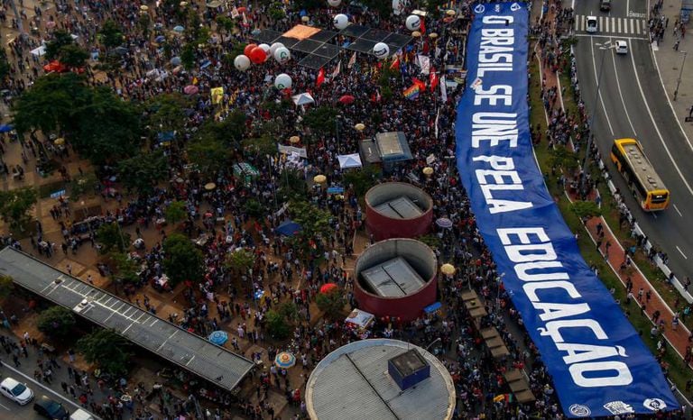Se os estudantes que se manifestaram contra os cortes do orçamento educacional foram descritos por Bolsonaro de “idiotas úteis”, nesta quinta-feira um jovem em Fortaleza o chamou, em um cartaz escrito à mão, de “idiota inútil”. Isso indica o clima de tensão, preocupação e medo que se vive o mundo da escola e da universidade, que se veem acusados de infundir ideologia marxista aos seus alunos e que incitam a sociedade a denunciar professores e alunos.