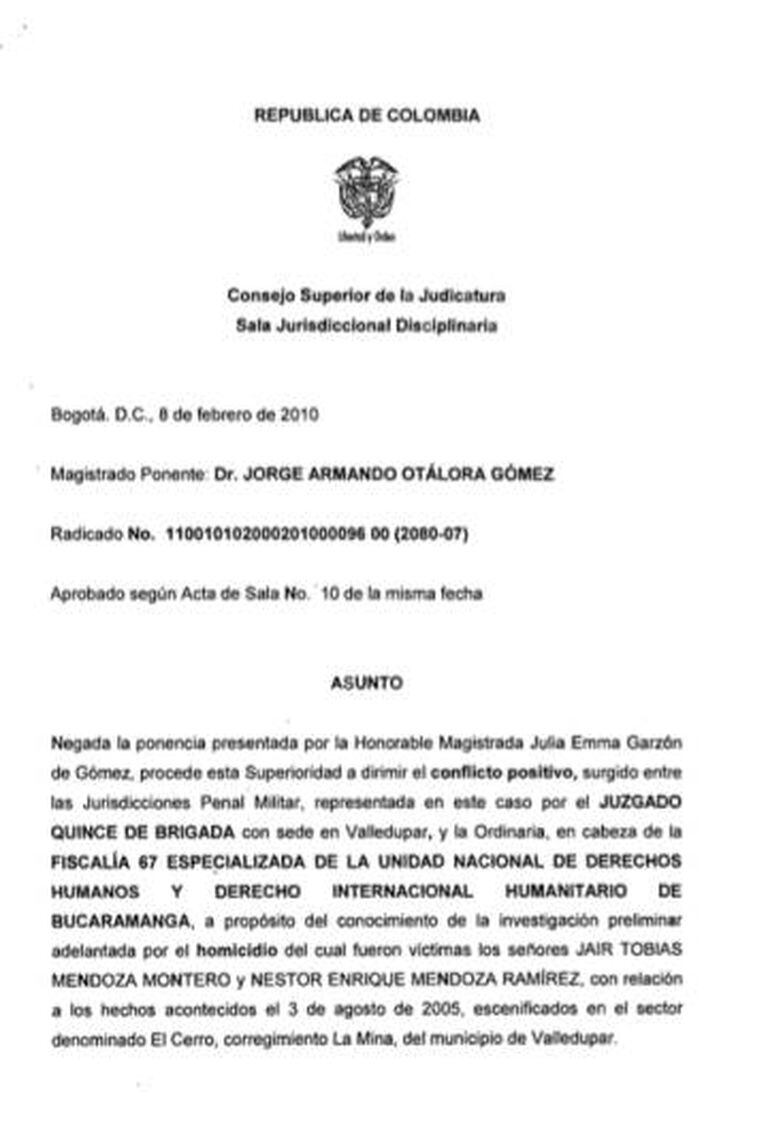 “Na manhã de 20 de novembro de 2005, no sítio Parcela de Tocaimo, na zona rural de San Diego (Cesar)”, diz outra resolução judicial, “foram abatidos por membros do pelotão Bombarda 3, do Batalhão de Artilharia Número 2 La Popa de Valledupar, e reportados como mortos em combate (...) os senhores Iván de Jesús Sierra de la Rosa, John Jairo Parejo Pérez, Alfredo Manuel Retamozzo e Waiberto Cohen Padilla”. Todos eram do departamento do Atlântico, “de onde tinham saído na noite anterior com dois homens que lhes ofereceram trabalho em Valledupar”. Após sua morte, o Ministério Público concluiu que “a presença da tropa militar no lugar dos acontecimentos não tinha nenhuma justificativa real, ou seja, não havia sustento ilícito”.