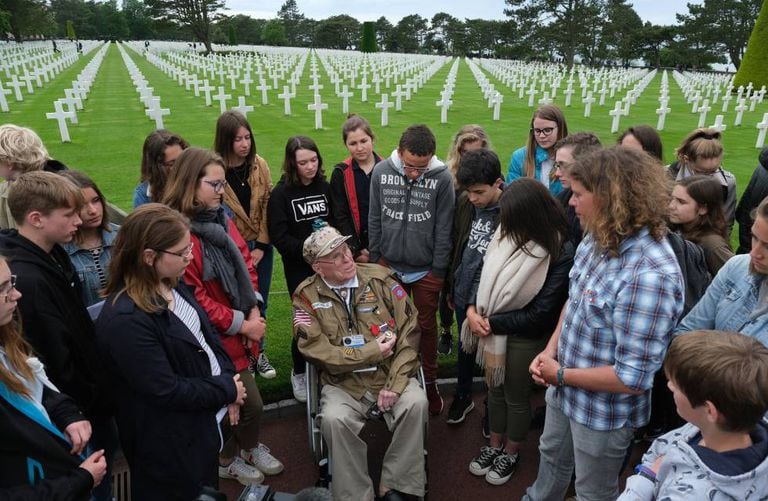 Esta é a história, mas não é toda a história. Léopolda Beuzelin tinha 12 anos em 6 de junho de 1944. Morava em Saint-Lô com os três irmãos e sua mãe. Seu pai morrera no começo da guerra. Explica que nesse dia começavam a jantar em família quando escutaram o rugido dos aviões e os viram se aproximar. "Não tivemos tempo de tomar a sopa", diz ela. A lembrança daqueles dias e meses é uma sucessão de situações extremas que a imunizaram para o resto da vida para os contratempos mínimos da vida cotidiana e que talvez explique seu bom humor e sua energia aos 86 anos.