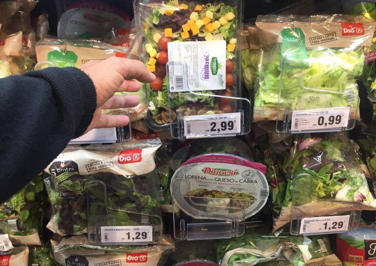 O fruteiro Pedro Díaz tem os produtos em caixas de madeira e serve tudo em papel. “Exceto algumas coisas delicadas que perdem umidade e vêm embrulhadas em plástico, como os cogumelos e as amoras”, ressalva. Para ele, bananas em bandejas cobertas com plástico são algo que não tem sentido: “Amadurece mais depressa e polui muito”. O problema, diz, são os “hábitos de compra”. “Aqui as pessoas também vêm com pressa, em cima da hora, direto do trabalho, com preguiça, sem pensar se o que querem é ou não da temporada”, afirma. No período da tarde lhe pedem mais sacolinhas plásticas (que, por lei, são cobradas há um ano). De manhã, os clientes preferem usar sacolas de tecido e carrinhos, e às vezes aparece alguma jovem mãe vintage com sacola de vime. Confesso-lhe com certa vergonha que há anos não lavo uma alface, porque só compro salada embalada. Ele me recomenda a alface crespa e a romana. E tomates-cereja em rama, que vêm sem a típica bandejinha.