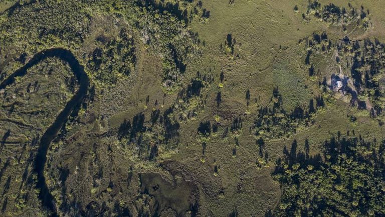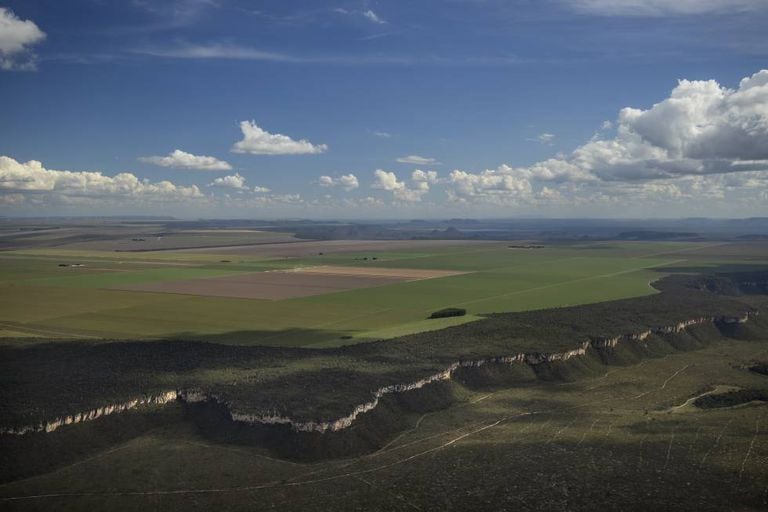 Numa vista aérea, a sucessão de quadrados de diferentes tamanhos e tons de verde parece um Rothko que se estende até onde a vista alcança. Apenas um pequeno avião amarelo de fumigação, que de cima parece um mosquito, dá uma ideia da magnitude. Aqui e ali surgem pequenas parcelas com vegetação verde escura. São reservas ambientais. Um total de 20% das terras do Cerrado é intocável por lei, na Amazônia, 80%. O desmatamento aqui é maior e mais acelerado do que lá: 8.972 quilômetros quadrados nos últimos 12 meses, segundo o Greenpeace. Quase o tamanho de Chipre, apontam suas medições feitas por satélite.
