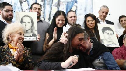 “Não há nada mais significativo que o abraço com meu tio depois de 40 anos de busca”, emocionou-se o neto 130. “A restituição da minha identidade é uma homenagem aos meus pais.” Trata-se de um caso extraordinário. As Avós estimam que a última ditadura argentina se apropriou, entre 1076 e 1983, de cerca de 500 crianças, que cresceram sem conhecer sua verdadeira identidade. Eram, na maioria, filhos de mães militantes, das quais foram separados logo depois de nascer para ser entregues a famílias alheias. Descobrir essa dura história familiar e assimilá-la leva tempo, e os netos recuperados costumam se ausentar do anúncio formal de sua restituição. Javier Matías, por outro lado, conhece seu passado há quase três anos, mas a história não tinha sido divulgada publicamente porque a Justiça ainda não conseguiu esclarecer totalmente as causas do desaparecimento do casal.