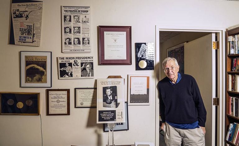 O escritório de Seymour Hersh (Chicago, 82 anos) é tudo o que um fanático pelo jornalismo poderia desejar: pequeno, austero e desordenado, com dezenas e dezenas de pastas empilhadas no chão. Fotos em preto e branco, arquivos, jornais amarelados. Alguns prêmios estão pendurados na parede junto a resenhas de seus livros, uma máquina de escrever antiga repousa sobre um armário, e sua bolsa de trabalho, uma pasta de couro marrom gasto, se oculta sob muitos papéis. Hersh não grava entrevistas nem digitaliza os contatos, para proteger suas fontes. Se não fosse pelo computador de mesa, pareceria uma viagem no tempo até meio século atrás. Na época, Hersh, com pouco mais de 30 anos, revelou a barbárie de My Lai, durante a guerra do Vietnã. Ganhou o Pulitzer. Depois investigaria o Watergate, exploraria o lado sórdido dos adorados Kennedy e tornaria públicas as torturas em Abu Ghraib, no Iraque.