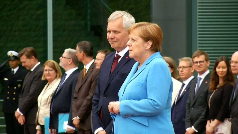 A chanceler alemã Angela Merkel voltou a sofrer em público um ataque de tremores enquanto ouvia o hino nacional alemão durante a recepção com honras militares ao primeiro-ministro finlandês Antti Rinne, na sede do Governo alemão. As imagens captadas pelas câmeras de televisão mostraram a chanceler sofrendo convulsões durante mais de um minuto.