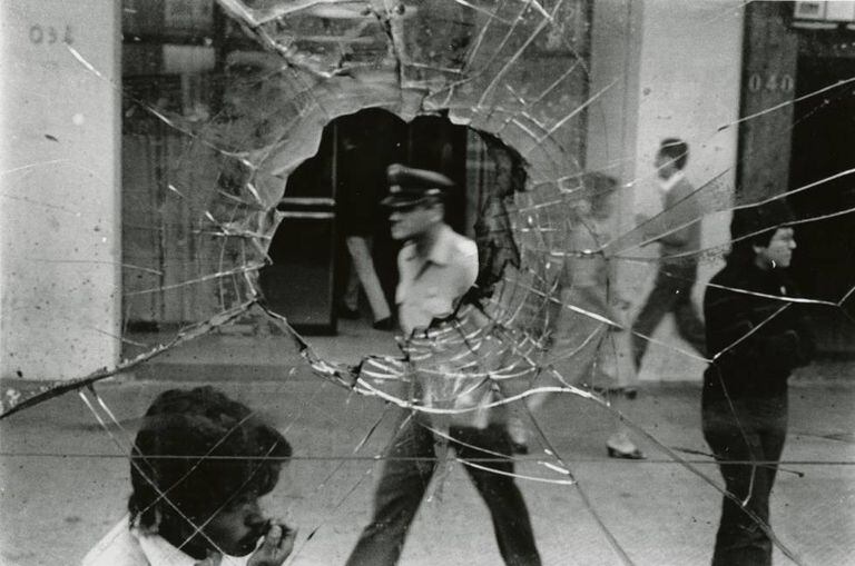 Diego Levy capta a violência das manifestações de 2003 na Cidade do México; Jaime Rázuri reflete o lamento do povo peruano expresso em um grafite; Álvaro Hoppe documenta a tensão vivida nas ruas de Santiago nos anos setenta e oitenta; nas colagens de Enrique Bostelmann, os líderes revolucionários se misturam a crianças e camponeses; e Agustín Martínez Castro nos conduz à intimidade dos camarins de travestis pouco antes do seu show. “Desde a Revolução Cubana se estabeleceu uma espécie de tradição pela qual para denunciar era necessário mostrar. Era necessário refletir a agressão, o medo e o sofrimento de forma realista. Entretanto, a partir dos anos noventa, os fotógrafos começam claramente a estabelecer estratégias oblíquas. Assim, encontramos a colombiana María Elvira Escallón, que evoca de forma metafórica a grande violência que sacudiu a Colômbia nos anos cinquenta.”