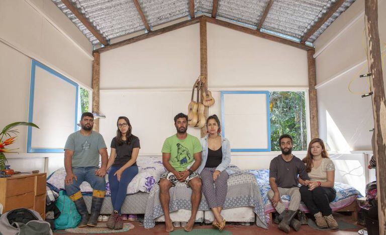 Enquanto almoçava, Karina decidiu que não sairia de casa, ainda que lhe rondasse o medo de que os parentes reagissem e ocorresse um conflito violento. Quando os policiais chegaram na sua casa e souberam que ela estava grávida, decidiram recuar. A casa azul de Karina foi a única das três que se manteve intacta. Foi para lá que, nos dias seguintes, os outros casais levaram seus pertences. Hoje três camas de casal ocupam a metade do único cômodo da estrutura, e os seis jovens dividem a vida na residência que restou — e que pelo menos por enquanto tem a integridade garantida por uma decisão judicial liminar que reconhece o direito de Edmilson permanecer ali pela comprovação de pertencer à comunidade tradicional caiçara. No processo, laudos antropológicos apontam que a família Prado vive na região pelo menos desde o século XVIII. (Abaixo, Marcos, Daiane, Edmilson, Karina, Héber e Vanessa, em uma das casas que construíram na Jureia. Por Maurício Pisani)