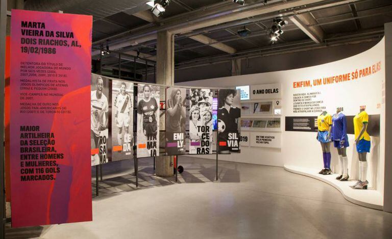 O veto durou até 1979 e não foi exclusividade do Brasil – Inglaterra, França e Alemanha também proibiram o futebol feminino durante algumas décadas no século passado. A exposição, que teve a curadoria da ex-jogadora Aline Pellegrino e das pesquisadoras Aira Bonfim, Lu Castro e Silvana Goellner, ressalta focos de resistência das mulheres esportistas no Rio Grande do Sul, São Paulo e Minas Gerais durante os anos de ilegalidade. Apesar da liberação na década de 70, a regulamentação do esporte no Brasil só veio em 1983. A primeira seleção brasileira foi formada em 1988, usando a base do Radar, um clube carioca. No entanto, a seleção feminina usou uma versão do uniforme masculino cedido pela CBF com pequenos ajustes até 2015. Somente no Mundial daquele ano, no Canadá, elas ganharam uma camisa exclusiva para mulheres, que foi comercializada pela primeira vez em 2019, para a Copa da França.