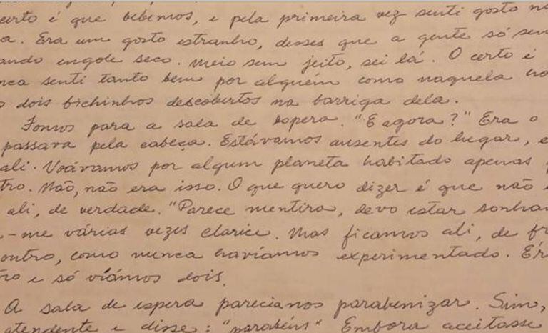 Fomos para a sala de espera. “E agora?” Era o que me passava pela cabeça. Estávamos ausentes do lugar, embora ali. Voávamos por algum planeta habitado apenas pelos quatro. Não, não era isso. O que quero dizer é que não estávamos ali de verdade. “Parece mentira, devo estar sonhando”, disse-me várias vezes Clarice. Mas ficamos ali, de frente pro outro, como nunca havíamos experimentado. Éramos quatro e só víamos dois.