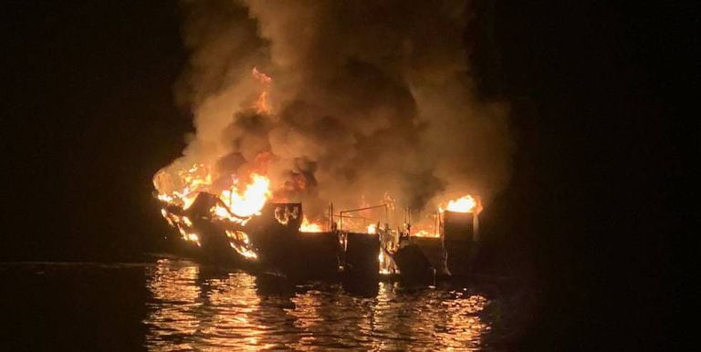 Segundo o Departamento de Bombeiros do condado de Ventura, às 3h15 da madrugada desta segunda-feira (7h15 em Brasília) agentes da Guarda Costeira ouviram pelo rádio um chamado alertando que o Conception, uma embarcação de passeio com 23 metros de comprimento, estava pegando fogo. Quando a operação de socorro começou, por volta de 3h30, o barco estava "envolto em chamas", conforme descreveu a capitã Monica Rochester, da Guarda Costeira.