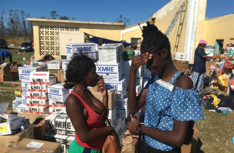 Furacões são algo familiar por aqui, embora nunca tenha havido um tão forte como o Dorian, cuja cifra provisória de mortos é de 43, sendo 35 nas ilhas Abaco. Isso contribui para que se viva a tragédia com certa resignação, e para que se contem as histórias pessoais com surpreendente distância. “O telhado da nossa casa saiu voando, e um ventilador de teto bateu nas minhas pernas. Tinha um metro de água em casa, tivemos que dormir num albergue. Agora não quero ir para Nassau, não conheço ninguém lá. Quero ir para os Estados Unidos, onde tenho família e quero ir à universidade”, diz Dachena, de 17 anos, que perambula com sua vizinha Medlines pelas tendas improvisadas onde se distribui a comida que chega nos aviõezinhos.