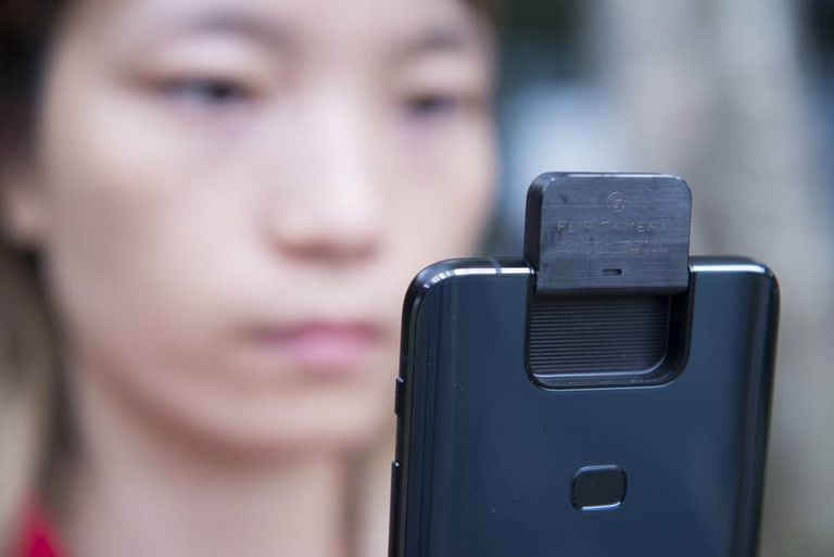 Depois de ter tentado conquistar o público da faixa média, a Asus entra em cena entre os carros-chefe com um smartphone que também apela ao interesse dos usuários pela fotografia selfie, com um sistema que lembra o do OPPO N1 e N3 : eles o chamam de Flip Camera e consiste em um mecanismo motorizado que levanta o módulo da câmera dupla principal —equipada com uma generosa grande angular e uma lente padrão emparelhada com um sensor Sony de 48 megapixels, quatro vezes a resolução do iPhone— para dar um giro e permitir que o usuário a use para se retratar. Funciona surpreendentemente bem: é rápida, dá ao celular uma aparência divertida com dois olhos robóticos que lembram o Wall-e e concede mais espaço a uma tela sem entalhes.