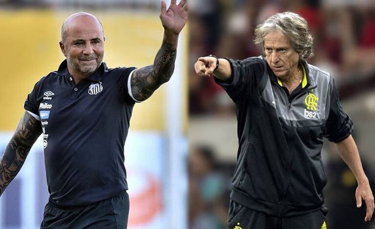 Ambos direcionaram os rumos da carreira ao Brasil este ano. Jorge Sampaoli veio primeiro. Reconhecido pelo inédito título da Copa América com a seleção do Chile, o argentino desembarcou em Santos chancelado por duas participações em Copas do Mundo e uma intensa passagem no Sevilla, sua única experiência no futebol europeu. De lá chegou o xará, Jorge Jesus, mas com destino ao Rio de Janeiro. Tricampeão de seu país à frente do Benfica, o português topou cruzar o Atlântico para comandar o Flamengo, onde assinou contrato em junho. Neste sábado, os dois treinadores disputam a liderança do Campeonato Brasileiro no Maracanã, valendo a conquista simbólica do primeiro turno.
