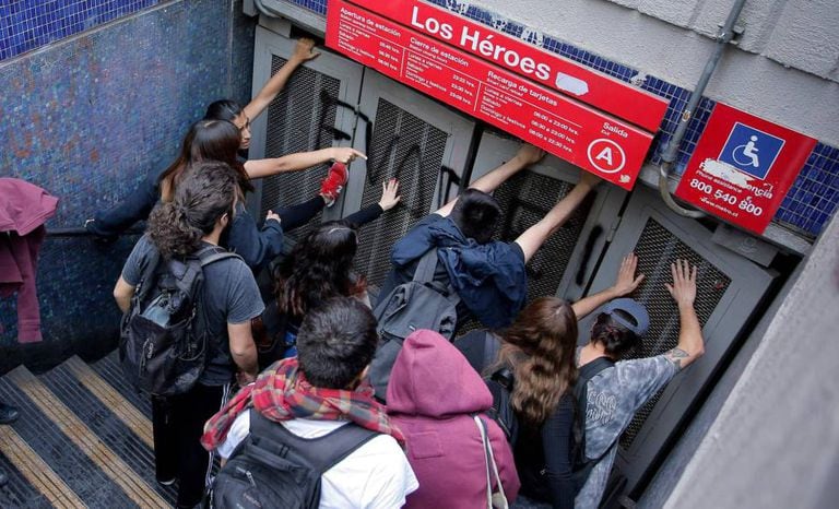 A rede de metrô de Santiago, um dos melhores símbolos do país por sua ordem e bom funcionamento, tornou-se há duas semanas cenário de inéditos protestos pelo aumento de preço da passagem, ocorrido no início do mês. Logo após o reajuste, muitos usuários começaram a entrar sem pagar e a mobilização foi se intensificado, junto com os atos de violência que deixaram prejuízos avaliados em pelo menos 700.000 dólares. Nesta sexta-feira a capital chilena viveu um colapso poucas vezes visto: as linhas 1, 2 e 6 do metrô fecharam seus acessos por causa dos protestos, razão pela qual milhares de trabalhadores precisam caminhar pelas principais avenidas em busca de transporte público para retornar a seus lares. Os pontos de ônibus, lotados, não deram conta, e não se encontravam táxis vazios. Os carros geraram congestionamentos nas principais ruas. Ações de vandalismo foram registradas pela cidade, como incêndios em estações de metrô, ônibus, monumentos públicos, bancos, supermercados e universidades. A sede da ENEL elétrica, alvo de críticas por conta do valor da tarifa de energia, também foi incendiada.