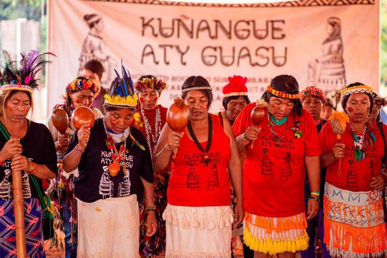 “Eu vou parar a plenária”, diz a voz ao microfone. “Do que adianta nós, mulheres, falarmos da violência sendo que os homens estão circulando?” O recado é dado pela jovem Aradunhá Kaiowá aos homens que foram aos poucos se dispersando. Ela conduz o segundo dia de discussões da sétima Kuñangue Aty Guasu, a grande assembleia das mulheres Guarani e Kaiowá, realizada a cada ano em uma terra indígena habitada por esses povos no Mato Grosso do Sul. Em 2019, o encontro ocorreu em setembro na aldeia Yvy Katu Potrerito, município de Japorã, na fronteira com o Paraguai. O protagonismo é totalmente feminino, mas os homens são convidados a estar ali e ouvir os relatos sobre problemas que os envolvem diretamente.