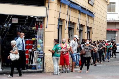 Há semanas, o Governo de Jair Bolsonaro discute qual será o futuro do auxílio emergencial de 600 reais dado a trabalhadores sem carteira assinada, autônomos, MEIs e desempregados para enfrentar a crise gerada pela pandemia do coronavírus. A ajuda, que inicialmente tinha a duração de três meses ― de abril a junho ― será prolongada, mas ainda não foram anunciados oficialmente os detalhes. A equipe econômica e o próprio presidente já admitiram que mais outras duas parcelas deverão ser pagas, mas o Governo quer reduzir pela metade o valor a ser transferido à população vulnerável, alegando que a manutenção dos 600 reais atuais tem um custo alto e geraria um aumento explosivo da dívida pública, que pode chegar a quase 100% do PIB no fim do ano.