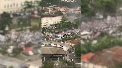 Um vídeo gravado por profissionais de saúde da Santa Casa de Santos, no litoral paulista, é revelador sobre o desprezo coletivo pela crise sanitária. Uma multidão de torcedores santistas fazia festa nas ruas ao escoltar a delegação do time rumo à Vila Belmiro, nesta quarta-feira, antes da vitória sobre o Boca Juniors, que garantiu a vaga na final da Libertadores. “Meu Deus, o pessoal perdeu a noção”, diz ao fundo a enfermeira que registrou as imagens, incrédula ao avistar o mar de gente, a gritaria e os fogos de artifício que explodiam em frente ao hospital.