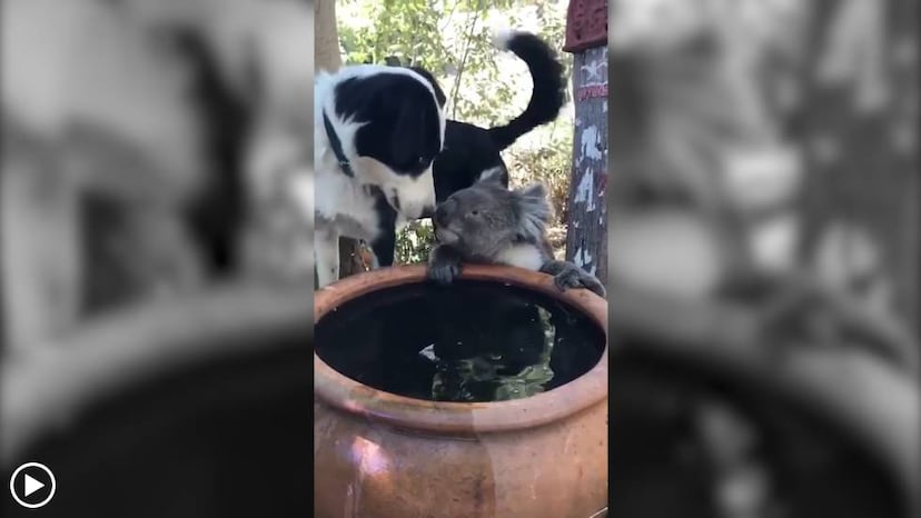 Rusty, o cachorro de Riley e Olivia Stone, residentes do condado de Adelaide, no sul da Austrália, ficou à vontade quando um coala se aproxima para beber de sua água, como se pode ver em um vídeo viralizado na Internet. “Ele o conhece muito bem”, diz Andrew Frost, o vizinho da família que publicou o vídeo no seu perfil do Facebook. “São amigos.”