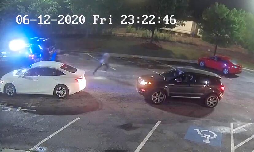 Rolfe sai correndo atrás de Brooks e dispara com sua pistola elétrica. Depois, tira do bolso a pistola com munição real. Quando o jovem negro abre certa distância, se vira e dispara a pistola elétrica, aparentemente sem nenhuma precisão. O agente Rolfe lhe dispara três vezes com munição real, e Brooks cai ao chão.