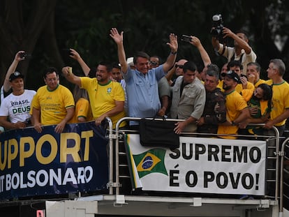 Polícia Militar, que havia bloqueado a Esplanada dos Ministérios, cede a pedido de bolsonaristas e permite desfile de caminhões, vans e ônibus de apoiadores do presidente na noite desta segunda-feira