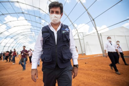 O embate público que o presidente Jair Bolsonaro e o ministro da Saúde, Luiz Henrique Mandetta, travam há semanas sobre como enfrentar a crise do coronavírus tem um claro favorito entre a população brasileira. É o que indica a mais recente pesquisa do Atlas Político, divulgada no momento em que, mais uma vez, a pasta de Mandetta enfrenta tensão com a queda em falso de um secretário estratégico e os crescentes rumores de que ele poderá deixar o cargo em breve. Feito entre domingo e terça-feira, o levantamento, que contou com 2.000 pessoas recrutadas na Internet e tem margem de erro de 2 pontos para mais ou menos, aponta que 76,2% dos brasileiros é contra uma eventual demissão do ministro, cuja defesa do isolamento social conflita com as declarações ―e atitudes― de Bolsonaro, que desde o início da crise demonstra mais preocupação com as consequências econômicas do congelamento das atividades comerciais.