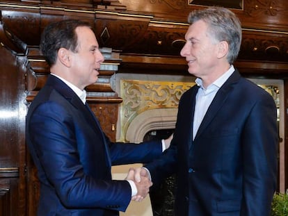 Prefeito de SP se reúne com mandatário argentino a quem vê como modelo. A jornalistas, diz que não descarta candidatura conjunta com Geraldo Alckmin para 2018
